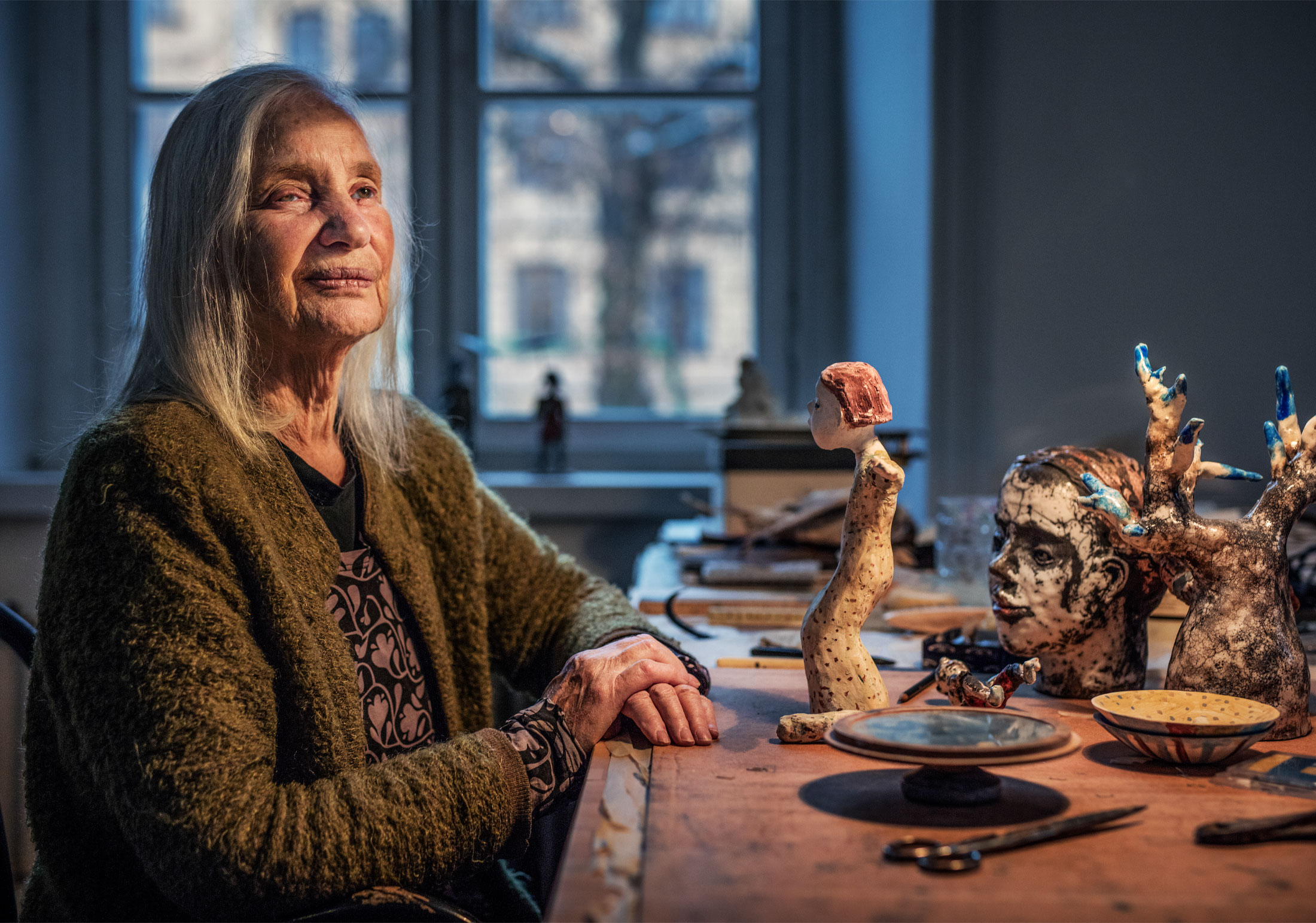 Efter en timme smyger jag ut ur ateljén, lämnar bildmänniskorna åt sitt och undrar hur i hela friden jag ska få ihop berättelsen om en människa som inte vill bli berättad om, en konstnär som vill slippa varje fråga men ändå tackar ja till en intervju?